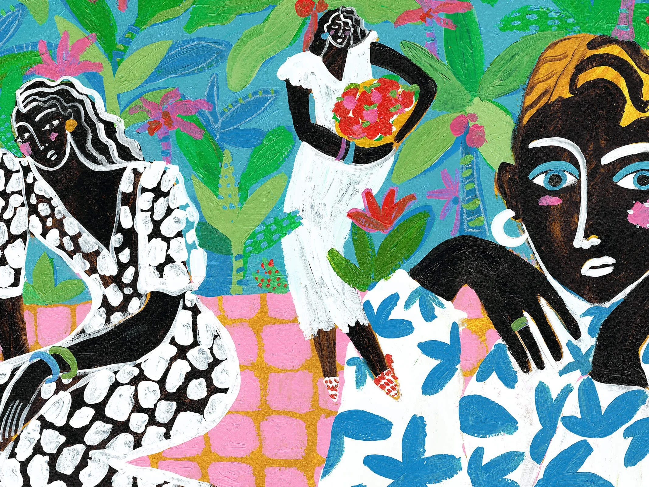 Mexican artist Ana Leovy first fell in love with one of her practices some years ago during an art class. The technique, blind contour drawing, asks the artist to keep their eyes fixed on the subject without looking at the paper. Working also with gouache and acrylics, Ana’s focus is on celebrating diversity; weaving stories through shape and color, inspired by feelings, dreams and everyday life. The theme of sisterhood is evident in Ana’s paintings; women being affectionate with each other, or simply talking and being there for one another, and this mirrors her own life experience, as she’s always been able to confide in the inspirational women around her. Her clients include Women’s Health Magazine, The Guardian, Man Repeller, Tory Burch, Sandro Paris, Tombolo, Ivy & Oak, Time´s Up, Atlanta Magazine, Pai Pai, Ebboo, Girls Night in and The Jungalow.