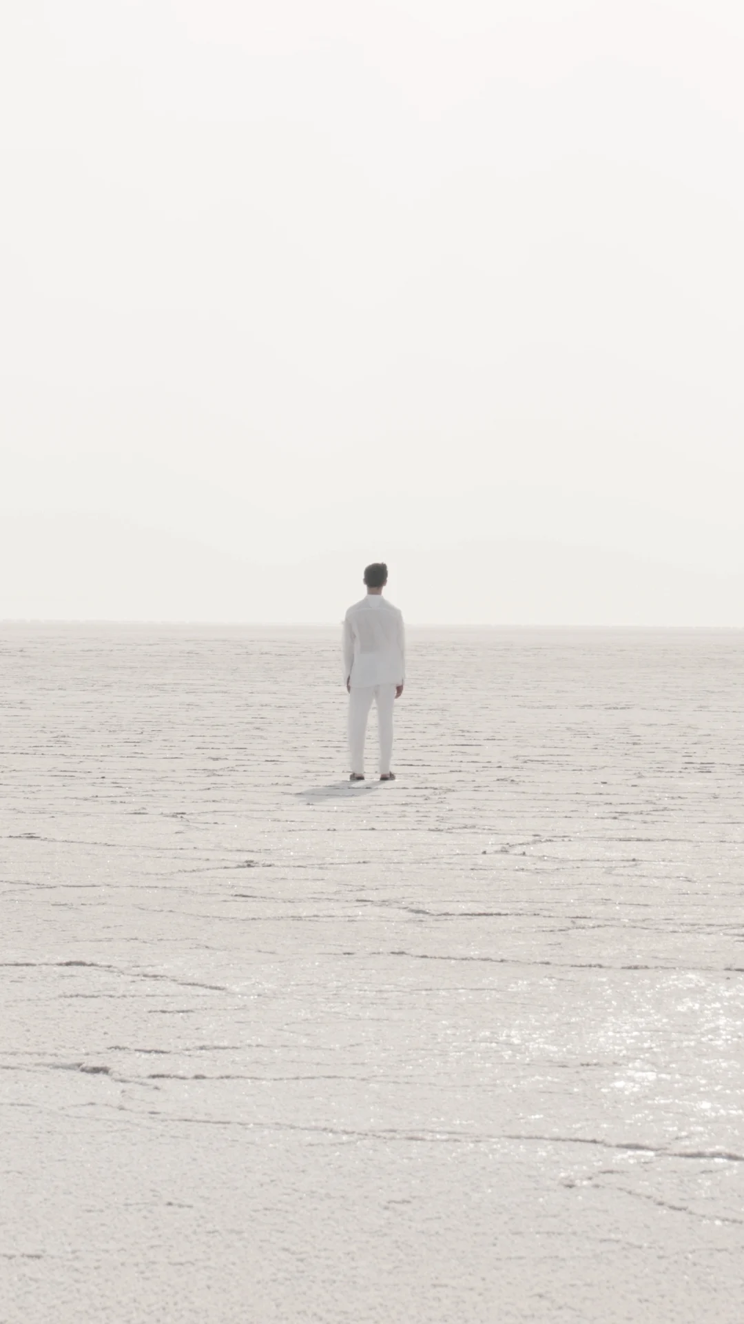 To visualize the soul drifting in an in-between realm, he chose to shoot in a ruined Soviet-era site of the Aral Sea, specifically Barsakelmes—a place marked by destruction, historical violence, and unresolved identity. Before the Biennale, Seit says his connection with Uzbekistan had been minimal, “I had visited Tashkent twice for shoots with Jenya Kim,” he says but as he began preparing the work, he started returning to Uzbekistan regularly. For this reason, he chose to film literally in-between the two countries, in southern Kazakhstan near the Uzbek border.