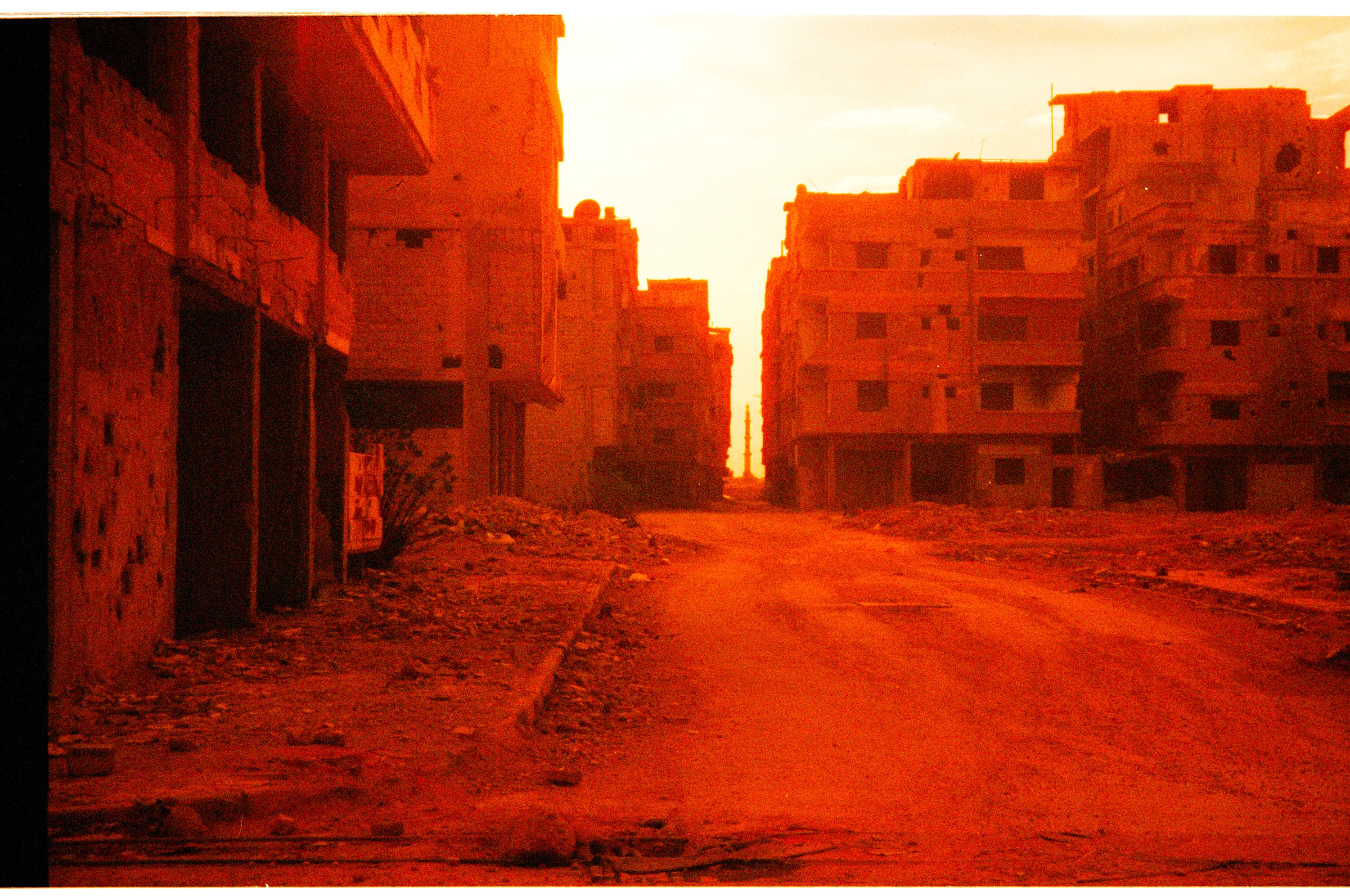 “For me, if I had to imagine Syria, I would imagine rivers of blood flowing in the streets,” Baraa tells me, his voice stern and his eyes heavy. “In every corner there are mass graves, there are criminals still hiding.” The redness of the blood with which Baraa sees Syria is taken literally in his series of photos using redscale color film, taken since the start of 2025, when Baraa returned to Syria. In these haunting images, we see Syria through Baraa’s gaze: the beauty and the bloodshed. A sense of home, or what’s left of it.