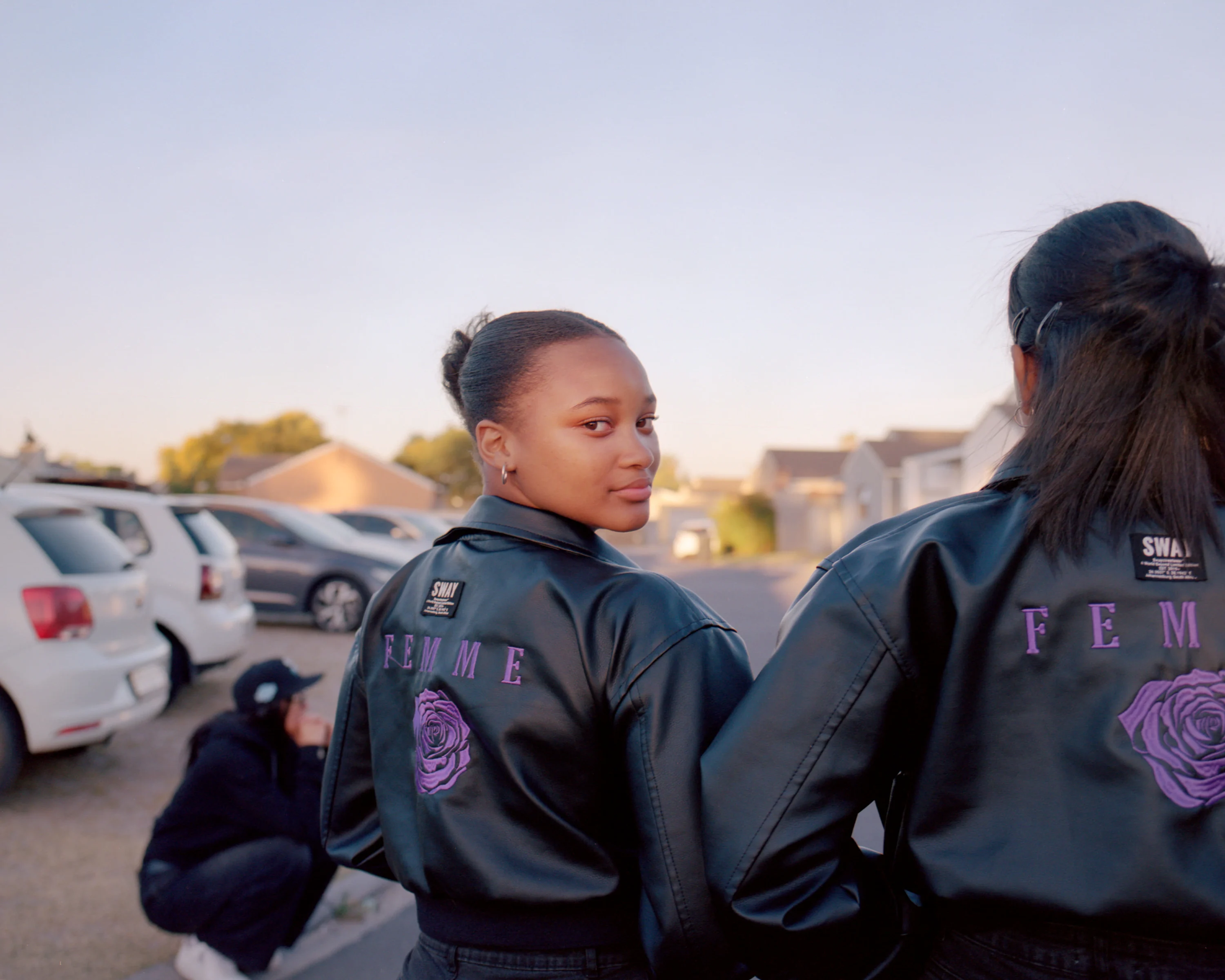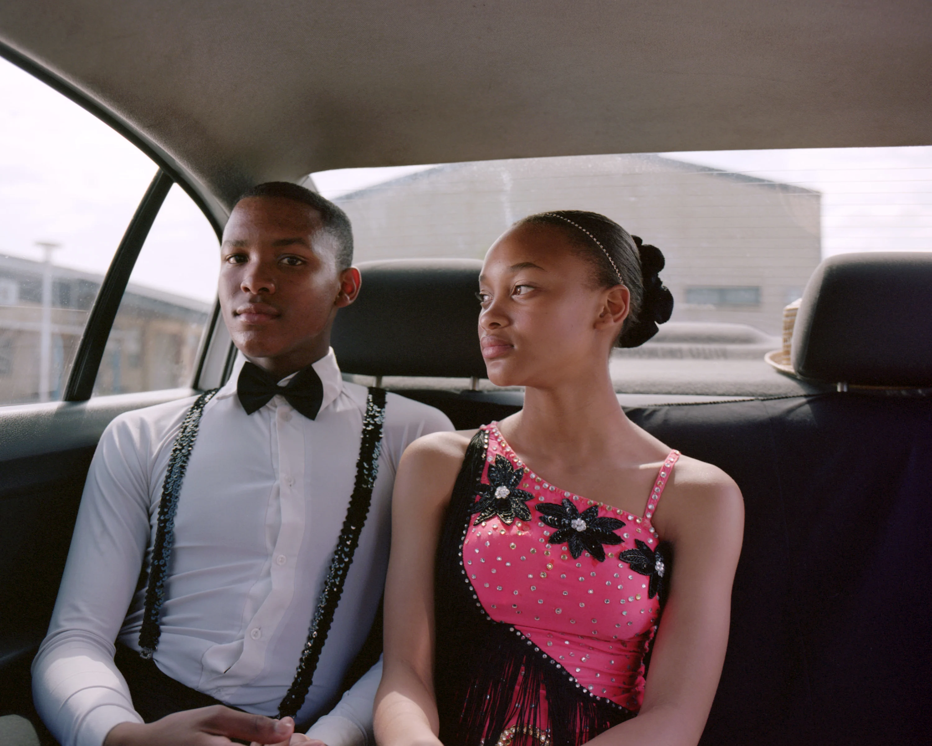 In 2017, Alice Mann worked at a primary school in Belhar, Cape Town, for “Drummies,” her acclaimed series exploring all-female teams of drum majorettes in South Africa. As part of her work with the school at the time, she was asked to photograph their newly established ballroom dancing team. “I did documentary portraits of all the ballroom dancers, and we played around in little groups in the same way that I had done with the drum majorettes,” she says. She recalls how one duo stood out to her amidst a band of young dancers still finding their feet. “They were completely synchronized,” she recalls, “and looked like they had been doing it for 30 years.”