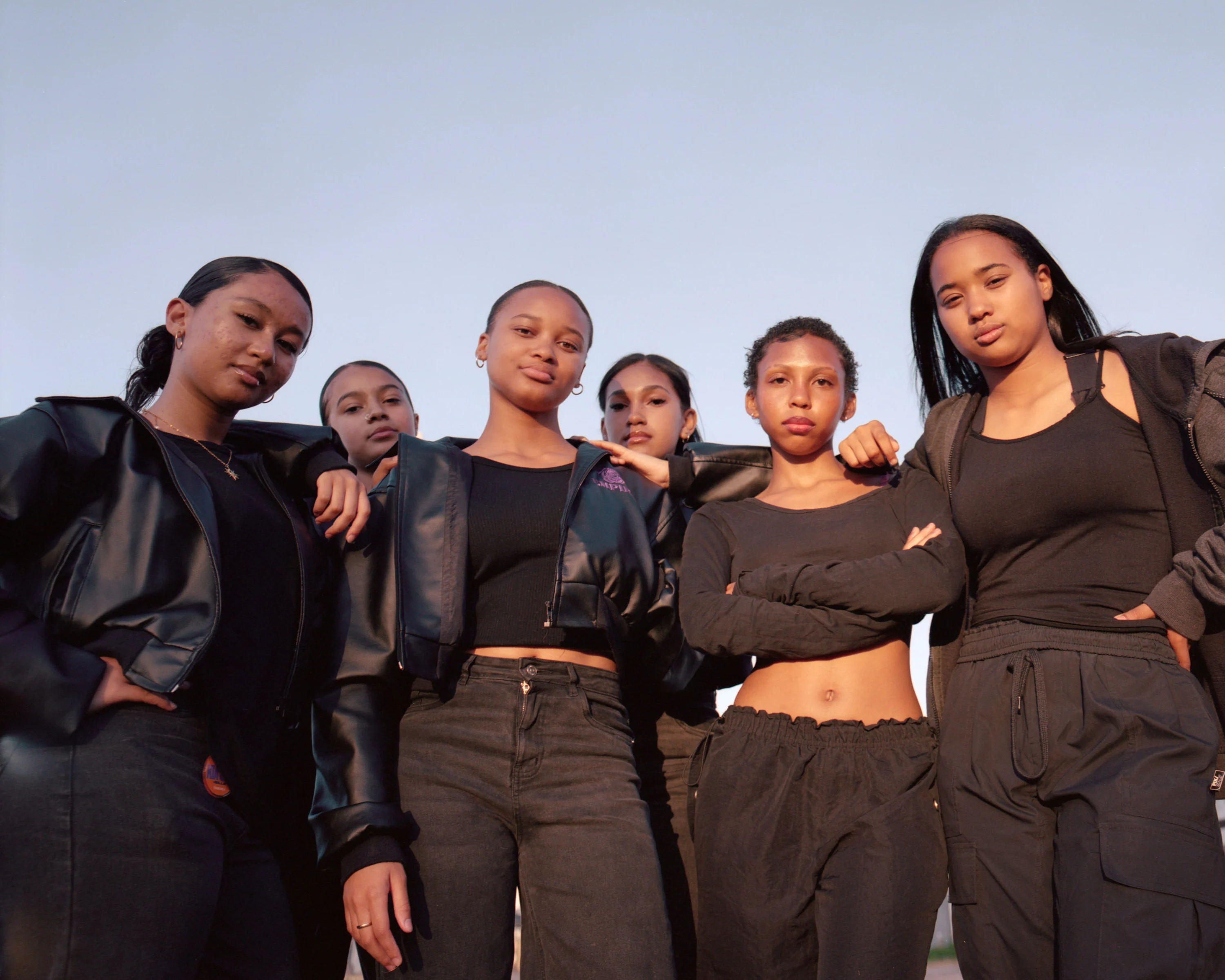 Tehillah and Corban have not just grown in age—they’ve also evolved their interests within dance. After years of performing as ballroom partners, they’re pursuing their passions for hip-hop and contemporary dance. “Hip-hop is something new for me, and it's something that I want to experience,” says Tehillah, who is particularly drawn to the sense of community she’s found and how the style allows her to express her emotions. “She's the one who's been put in the middle, and she has so much attitude,” says Mann on her experience photographing Tehillah with her dance crew, XO Empire.