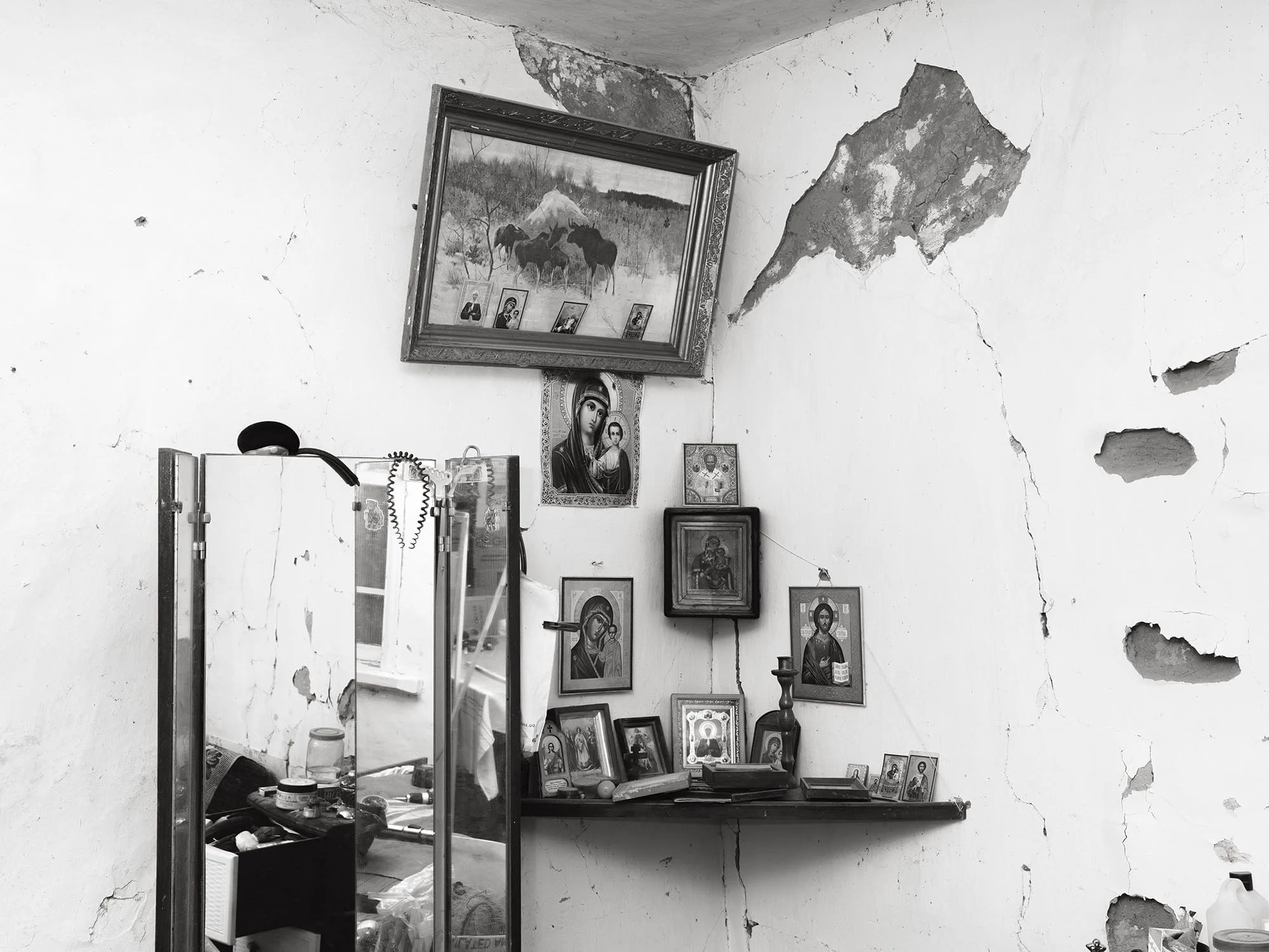 Shahrokhshahi is careful not to romanticize his experiences of Ukraine, which he has the power to leave at any time, or the suffering of its people (he feels words like “resilience” segue dangerously into complacency). “But I do find it beautiful that people remain steadfast in defying their conditions and still being able to have dignity in their life,” he says. On his most recent trip to Ukraine, in the grip of Moscow’s weaponization of winter, electricity, internet access and heating had become finite resources even as temperatures plummeted to -23°C. “It’s a really tough time, but then you still manage to have a bit of fun somewhere,” he says. Even in “the context of chaos,” there are slivers of peculiar majesty. “I don’t know if I identify really with the documentary thing, but the reason I’m not too fussed on staging, or writing scripts for moving image, is because I think there’s so much beauty in normal life. You just need to look for it.”