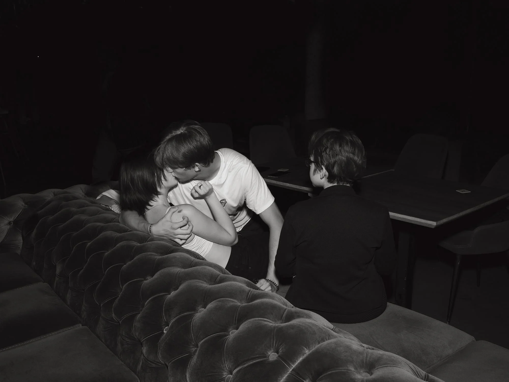 For every photograph with a grave reading, there’s a lighter one, too—often at the hands of young people. Shahrokhshahi captures ordinary coming-of-age instances of pleasure, pain, and pranks. He’s especially fond of one photograph showing two young people locked in an embrace while their friend is stuck third-wheeling. “It’s that awkwardness that’s so human, and that also means it’s something to relate to. Can you relate to a guy holding an AK-47 with a big scar down his face? I can’t. But do you know what I can relate to? A first kiss.”