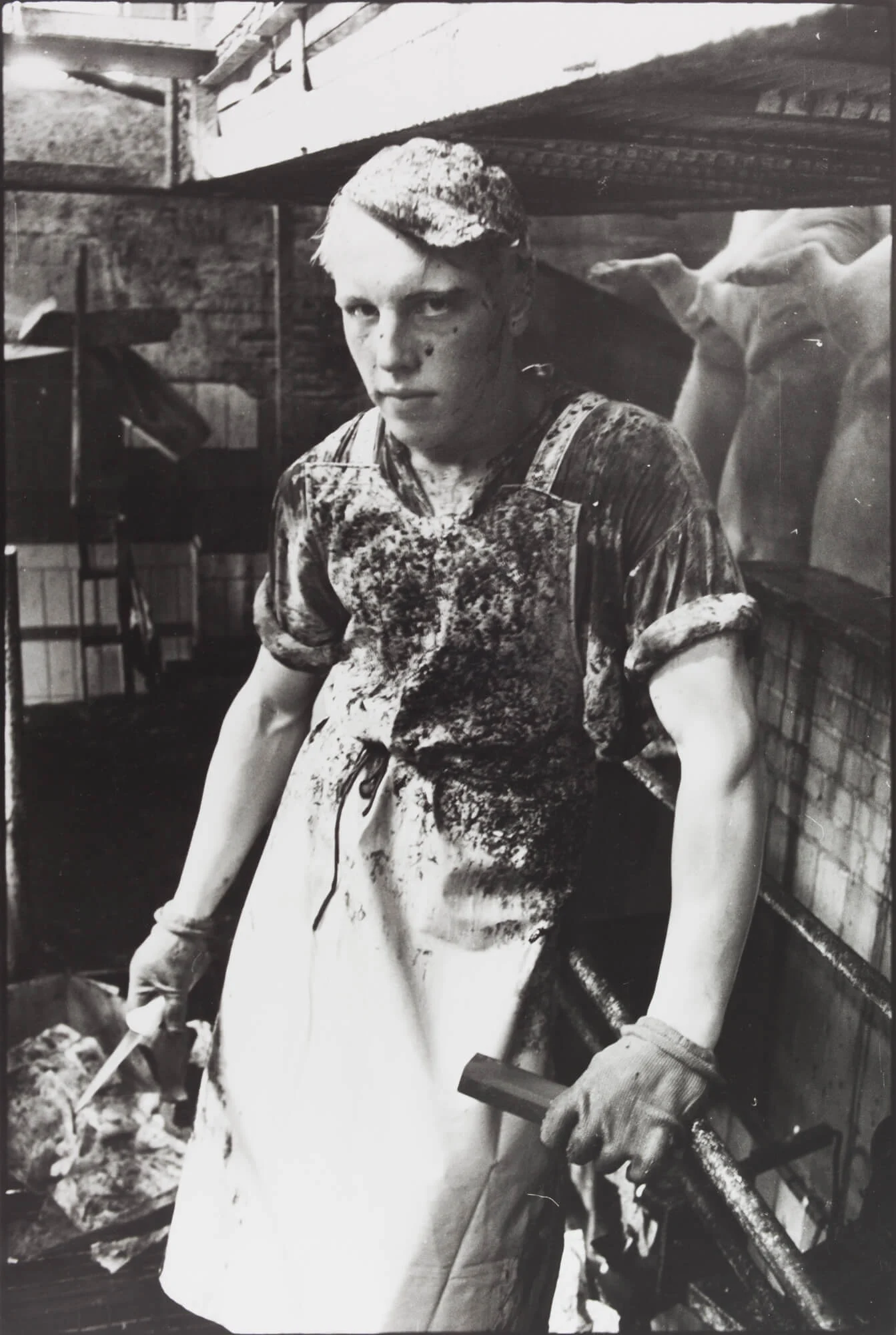 Then there’s York der Knoefel, a self-taught photographer from Berlin who built a maze out of steel plates, on which he had mounted photographs taken inside a state-run slaughterhouse in East Berlin. The work seems to draw parallels between the citizens of East Germany and the animals led to their death in VEB Fleischkombinat.