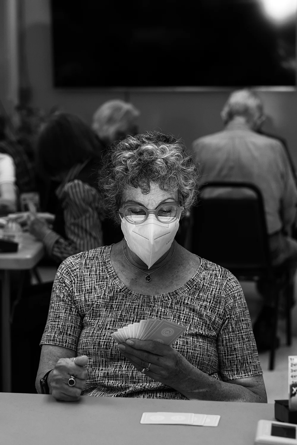 “This actually wasn’t even an enclosed room, it was just a part of the senior center and people were walking through it into other classes. It wasn’t a very large space, but they seemed really happy to be there. The organizer told me it was a pretty packed day for post-pandemic Bridge, but they used to have a lot more tables. It’s such a shame because Bridge clubs are really special for seniors—there are a lot of cognitive benefits, and there’s also social stimulation.” - Bess Adler