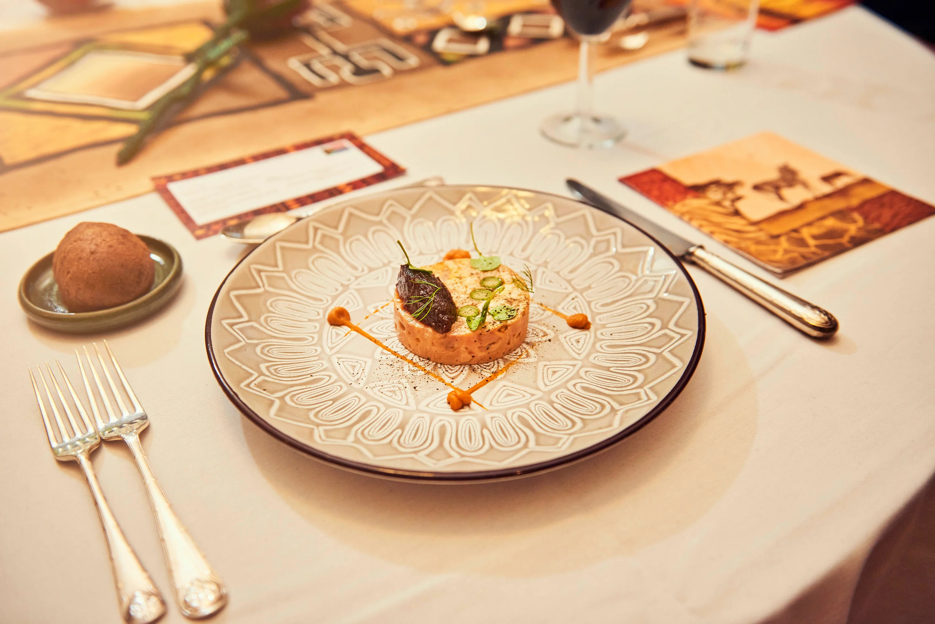 Foods that risk offending cultural or religious values tend to be permanently off the agenda (pork is controversial here), as are foods that are messy to navigate, so lobster’s out too. During my posting in Romania, we were trying to showcase British food and drink and pay respect to local Romanian food and drink—we’d mix it up with a local first course and British main course,” adds Brummell.