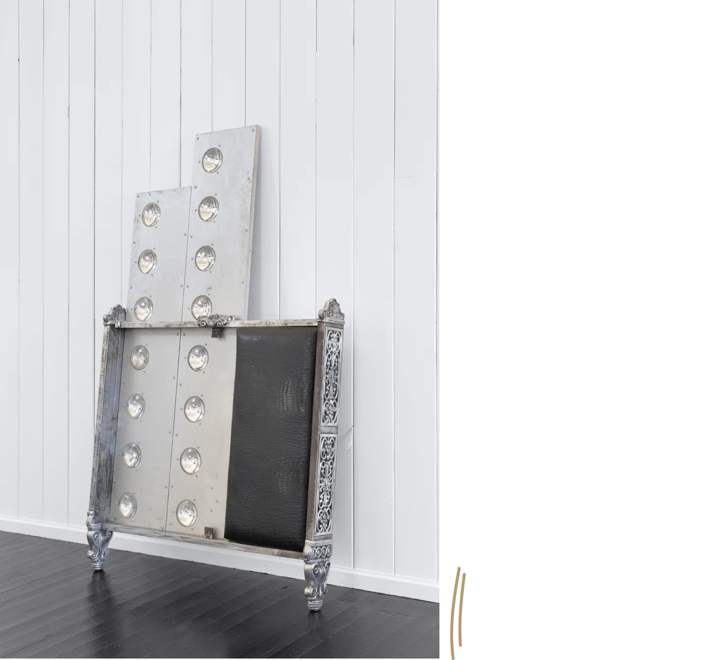 “[Slab culture] emerged from the ghettos of the city, and to me, it made a lot of sense to take that position within my invitation to contribute to this group exhibition,” says Kanu. “I had the opportunity to align myself with a movement that was very much about the customization and the manipulation of property and material, which is complicated as a Black American, as an African American, based on the idea that we were once considered property.”