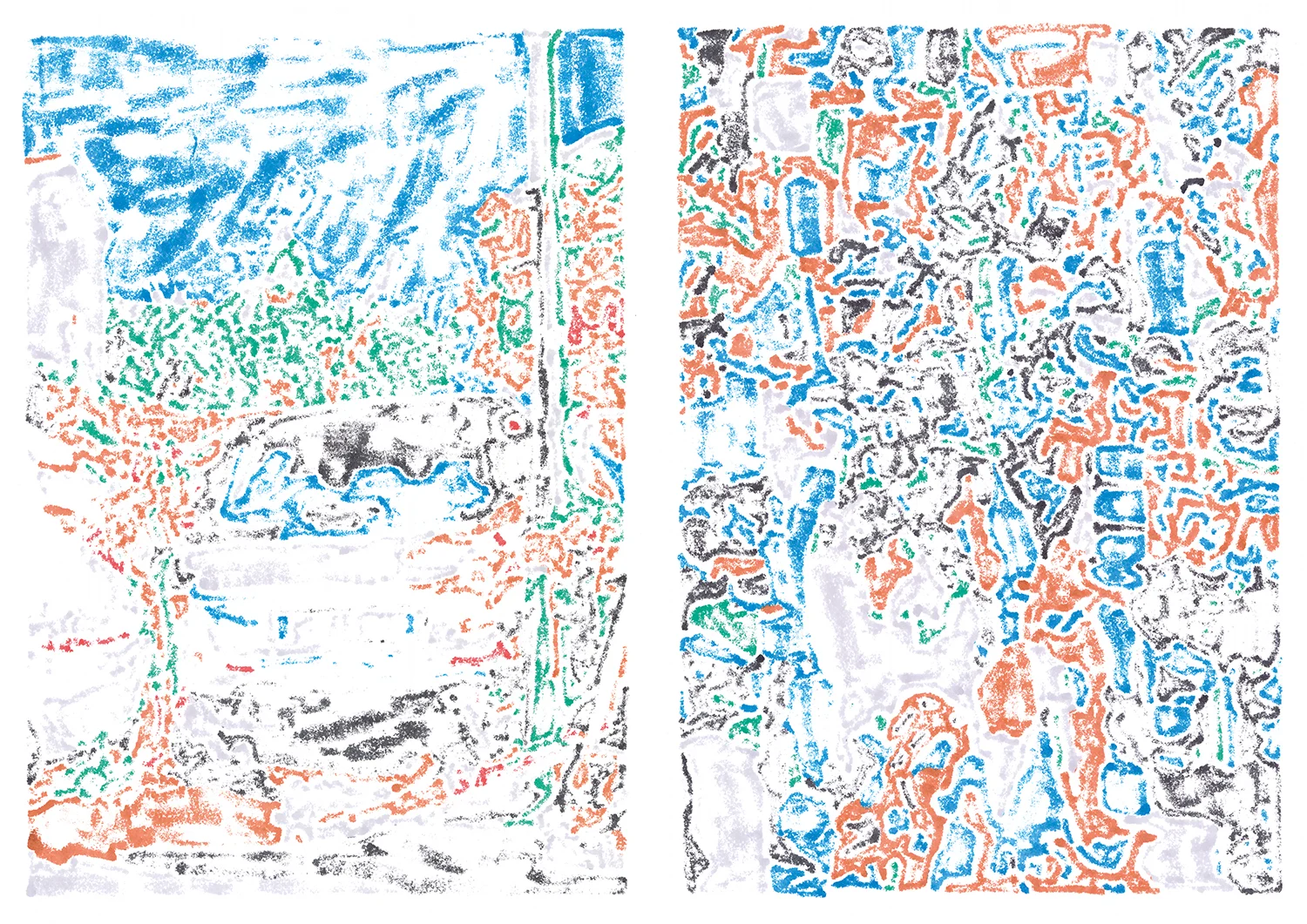 By reproducing the photographs, Fanélie completely destroys the original image and replaces it with a hand-drawn, abstract imprint. “The medium allows me to tease the border between abstract and figurative; a constant dialogue that links the whole project together.”