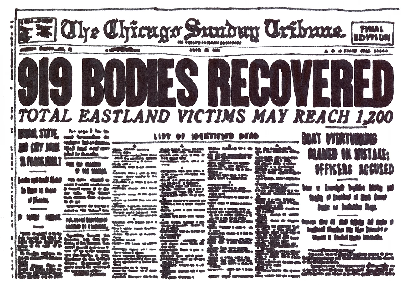 What at first glance seems like an abstract, freewheeling experiment with drooly markers, only reveals its complexity at a closer look. Skipping between images of busy streets before they were hit by a typhoon, the urgent headlines of a newspaper announcing a catastrophe, or a satellite image of a swirling storm, each illustration from Cata seems especially timely, with the looming threat of imminent natural disasters spurred on by climate change. “I am fascinated by human beings and by what they are capable of accomplishing,” she says, “but I am also horrified by their foolishness at times. Not all natural disasters are our fault, but some could have been avoided.”