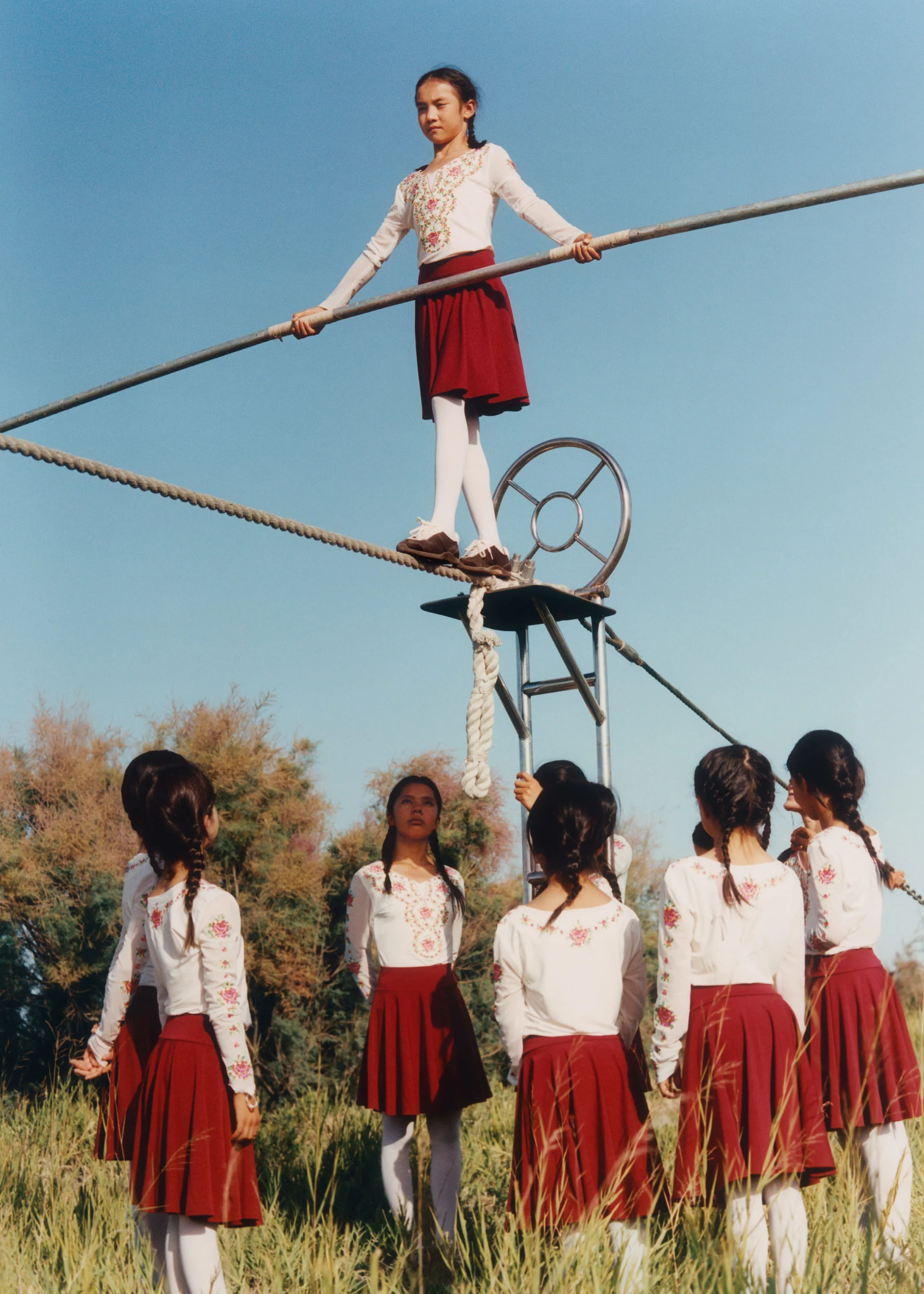 This tension between fear and possibility is echoed in one of the book’s most striking sequences: young girls practicing Dawaz, a 2,000-year-old Uyghur high-wire walking art in Xinjiang. They were between 12 and 16 years old. Ma tried it herself and was shaking. She asked one girl if she was afraid. The girl replied, “If I’m afraid, I’ll never make it work.” “That really stayed with me,” Ma says. “That’s also my relationship with photography. Every time I start a new project, there’s fear. But you have to do it anyway.” She was adamant those images belonged in the book. “I told my editor I needed those images in the book. I want to send the book to the girls. I want them to know they made an impact.”