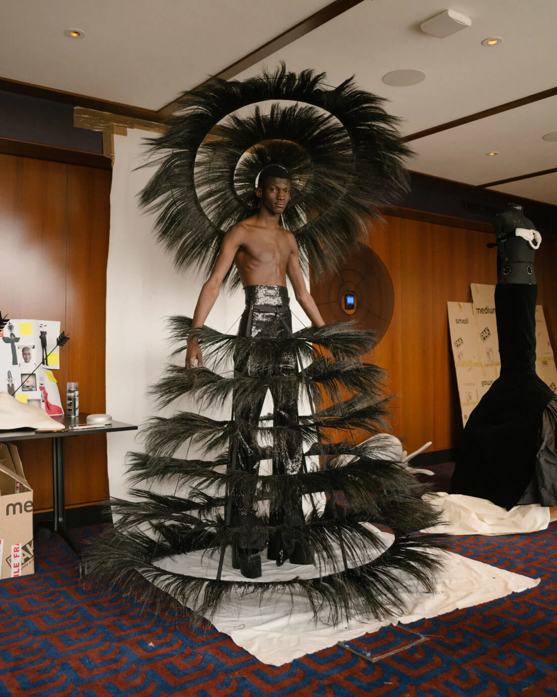 He describes the latter as a “homecoming”, the type of moment he fantasized about as a child (such is his fame on social media, the crowd gathered outside the Metropolitan Museum of Art were chanting his name). “All this work that I’ve literally done from my bedroom, and a hotel room, with all my collaborators and friends from around the world, coming into a physical space. It was crazy—seeing Hamish Bowles, Tom Ford, these people I’ve had the most incredible respect for, the reasons that I’m in fashion. It was epic.”