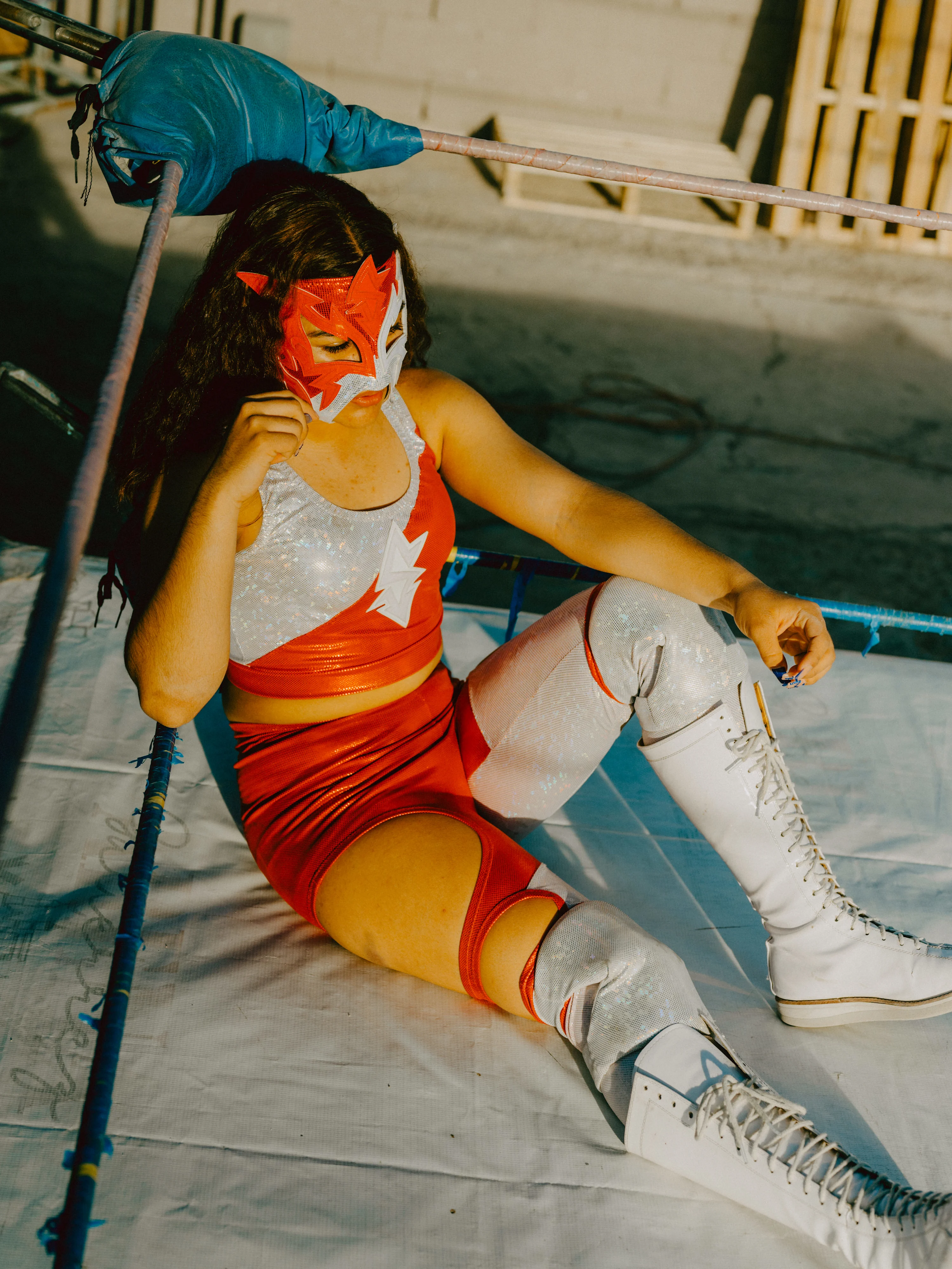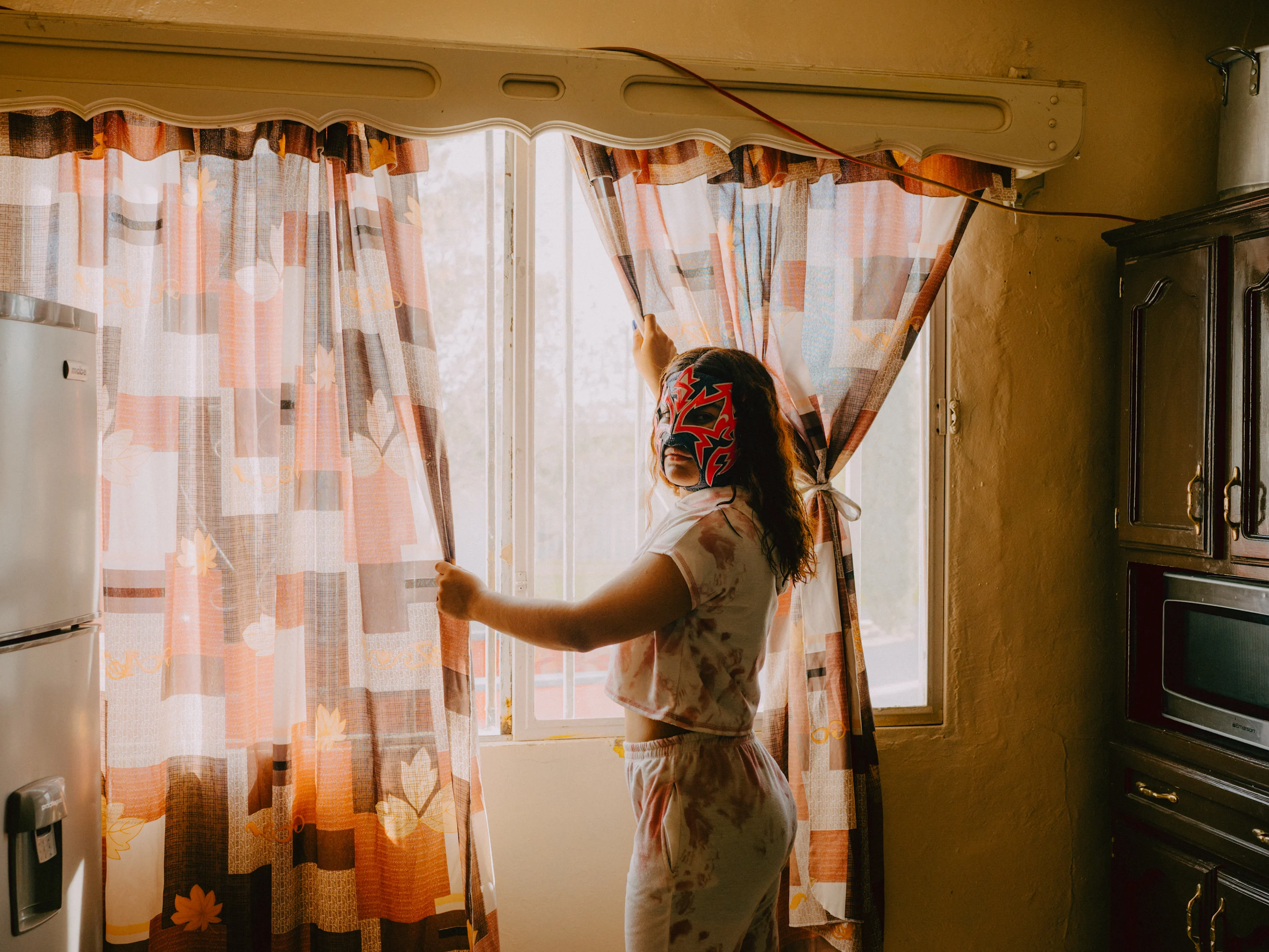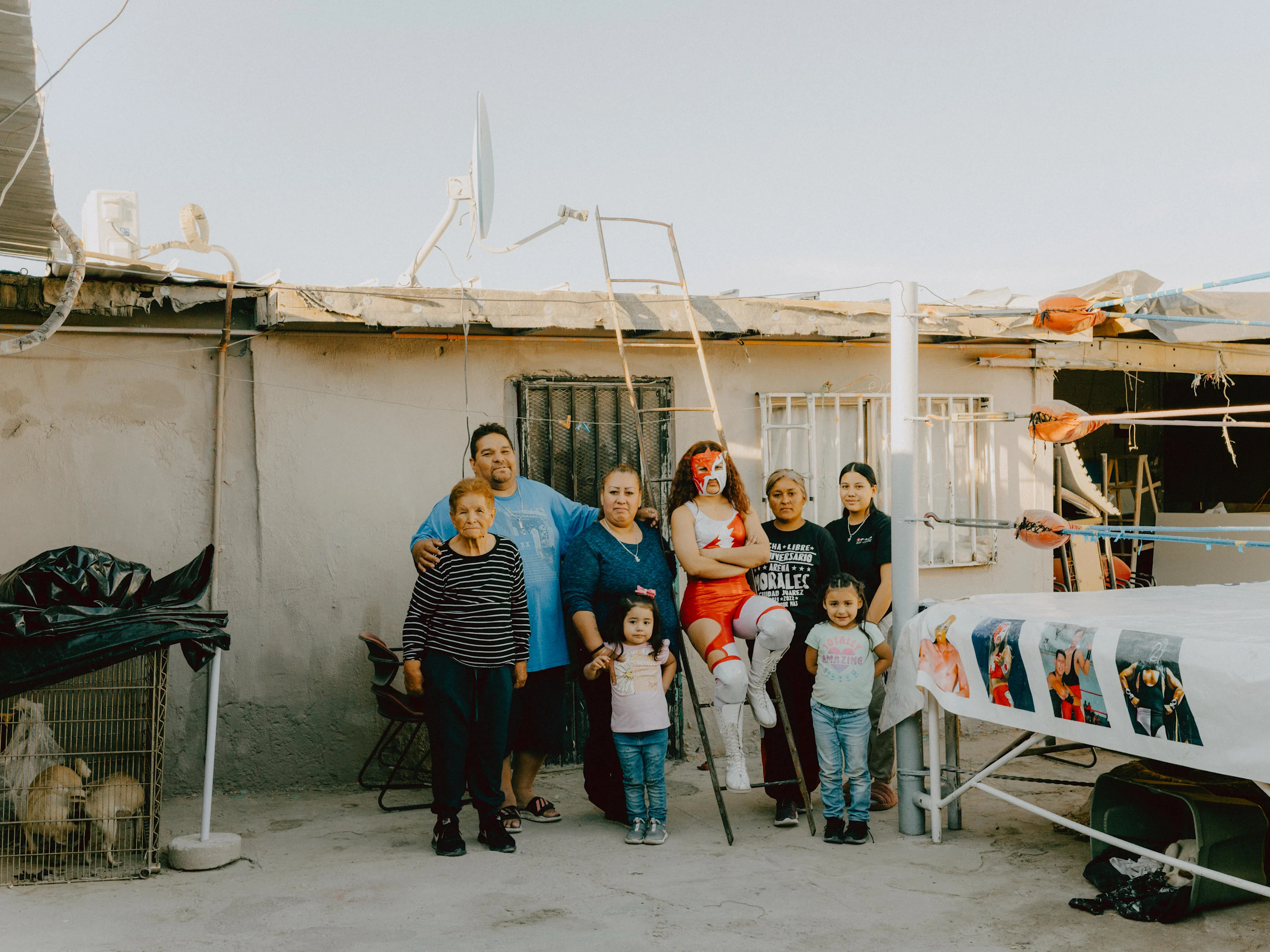 Among the 200 wrestlers in Ciudad Juárez, just 15 are women. Their diverse profiles reflect the eclectic nature of a sport deeply embedded in Mexican culture. Take Universis: she used to roam the streets with a brutal gang and is now celebrated as a heroine in the working-class neighbourhoods. Lola González, a local hero aged 66, who still competes in Mexico City, has reigned the sport for decades. In contrast, 15-year-old Sayuri is the youngest wrestler and wears a mask symbolizing her double life. Her classmates have no idea that she fights in front of thousands of spectators on the weekends. Baby Star, the city’s current champion—who is often accompanied by her daughter to fights—is from a family of wrestlers dating back three generations. Her grandfather participated when the sport was exclusively male. Today, she proudly carries on his legacy.