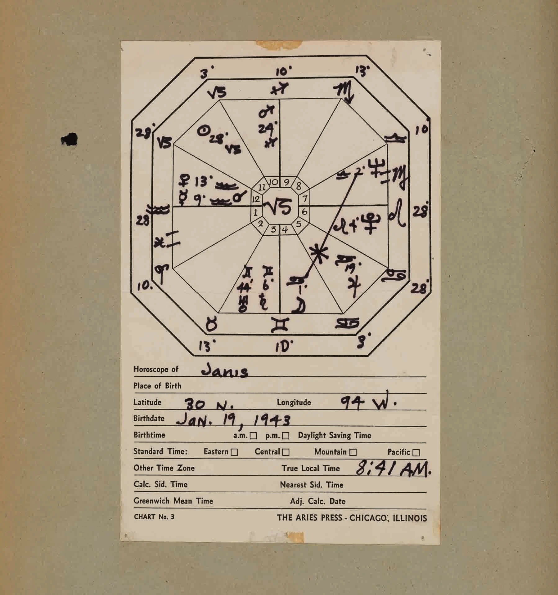 In a recent episode of You’re Wrong About on the Stepford Wives, podcasters Michael Hobbes and Sarah Marshall state that the problem with 1950s nostalgia is that it’s “nostalgia for a country that doesn’t exist;” an era of exaggerated societal and environmental ills, especially for women, that nonetheless we tend to look at through a rose-tinted lens. Joplin’s contemporary scrapbook pages, with their unrelenting optimism, feel a bit like that in the context of the knowledge of her struggles in school. Then again, if she did create her scrapbook as a space for positivity away from real life, that makes total sense, too. Besides, the high-school pages still show some of the same Janis spark that her fans adore, especially when read in a continuum with the later scrapbooks. Even well into her twenties, Janis tended to speak of boyfriends and crushes in a sweetly adolescent way – don’t we all? – pasting their portraits down amongst gig flyers and cut-outs of early reviews. “He’s a Capricorn like me,” she scrawls about one short-lived beau, “& is 25 & so far we’re getting along fine. Everyone in the rock scene just thinks it’s the cutest thing they’ve ever seen. It is rather cute actually”.