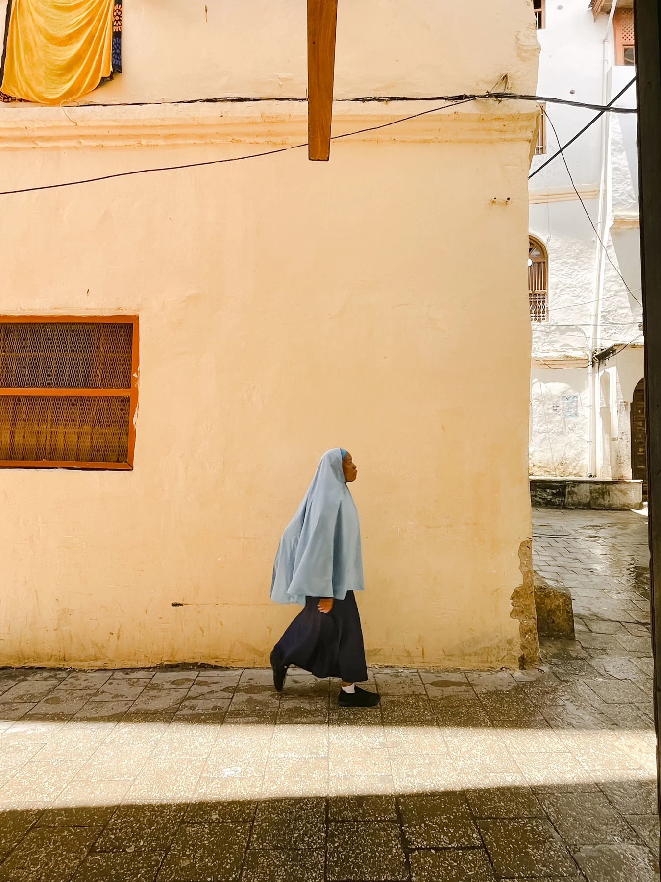 Stone Town can get busy. The old part of Zanzibar, and a UNESCO World Heritage Site, it’s an area where tourists flock to see the enduring architecture or shop local crafts and food. There’s a Freddie Mercury museum to visit in the house where the Queen frontman spent his early childhood. But in Zam’s photographs of his neighborhood, the scenes look quiet and serene, and his subjects are exclusively locals going about their day—the life that carries on regardless of tourist season. It’s this daily movement of people doing errands, or children walking to school, that keeps offering him new shots on the same old corners. “I want to show people how we live here on the island,” he says, hoping to reflect what’s unique about living in Zanzibar; a different experience from the mainland of Tanzania. “We live in a peaceful place. I want to confirm this by creating something peaceful that makes people feel good when they see it.”