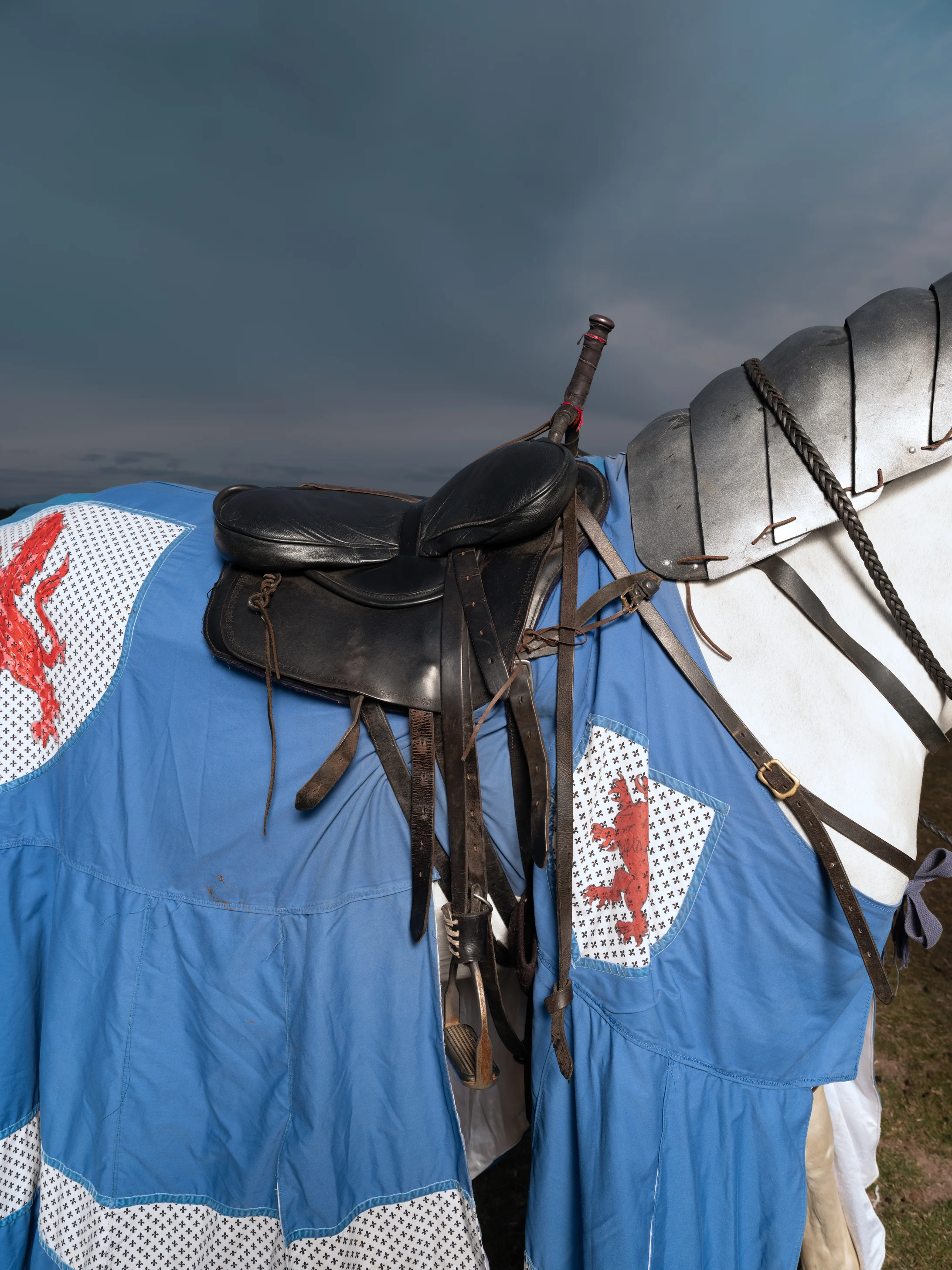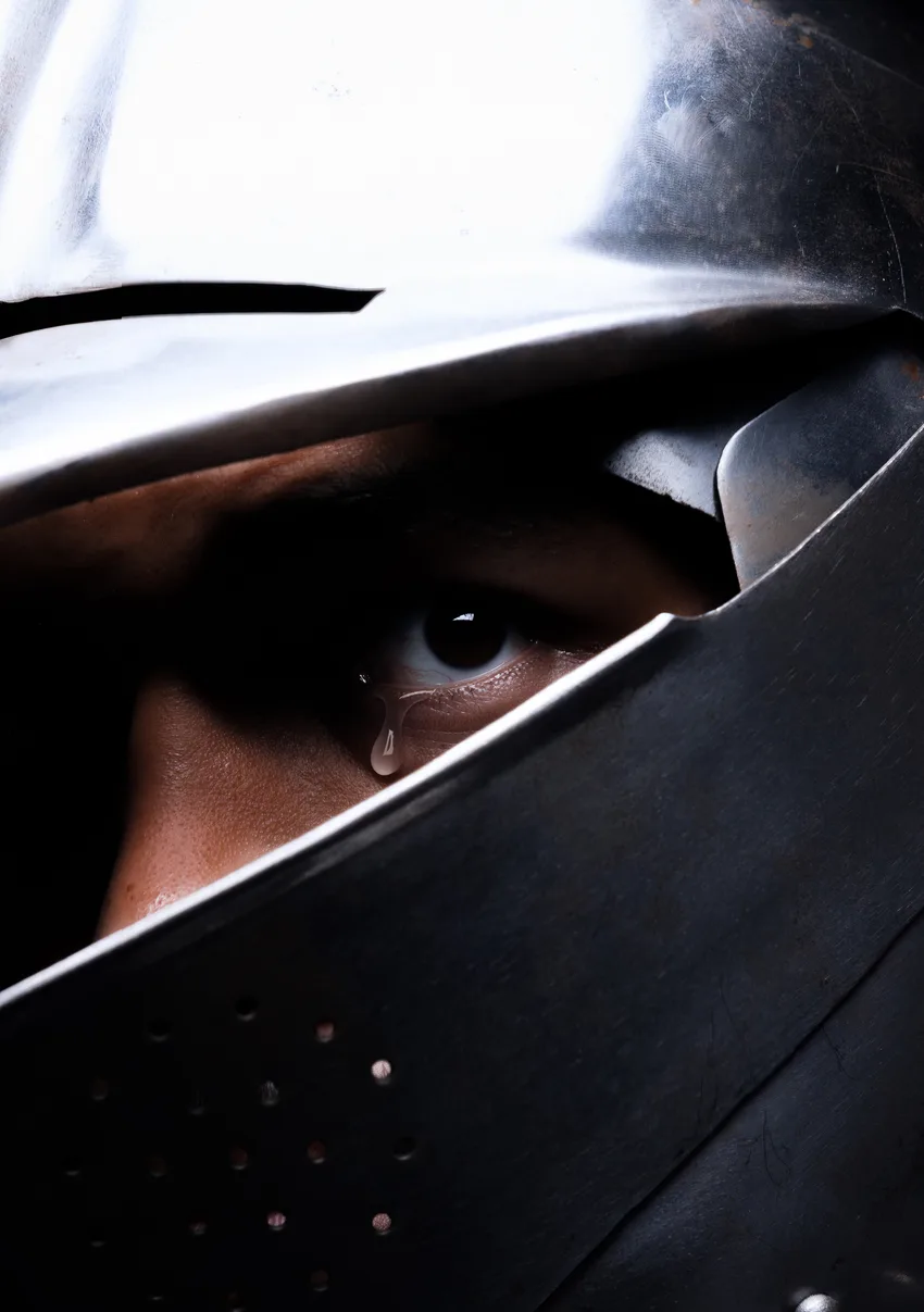 One set of photographs illuminate the humanity and vulnerability of the “knights” photographed, a tear illuminated beneath the armour. By allowing emotion to rupture the otherwise rigid iconography of knighthood, Weil lifts the veil for the spectator, exposing the cost of constant composure. “I just really want to show the toll wearing this armor takes all the time,” he says, the armor reflecting the thick skin required to deal with the complex experiences of being Black British. “I can have somebody say some of the most horrendous shit to my face and I’m going to take it on the chin because the last thing I want to be is the angry black man.” Visualizing that pain that comes from swallowing anger became central to the project. From an artistic canon perspective, it also references Alexander Kabell’s 1868 painting “The Fallen Angel.” “There’s just this anger, this emotional response that I love,” he adds.