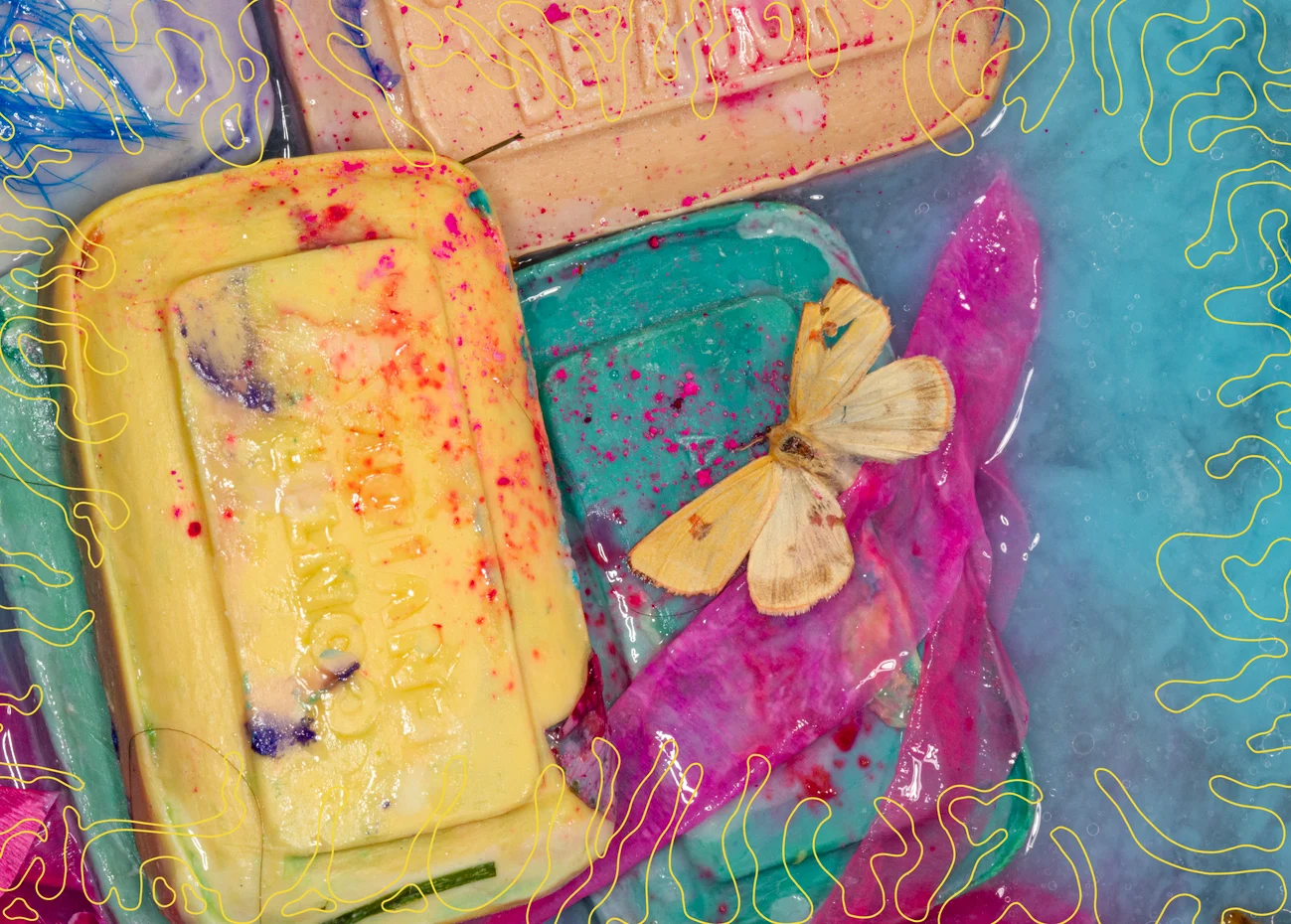 Amidst the chaos of the market, it was the bright, colorful soap boxes that stood out to Stephanie McArdle. These vibrant artifacts of folk magic and outdated graphic design sparked the idea for “JABÓN: Magic Soaps of Mexico,” a photobook made with artist Maisie Cousins that transforms these ritual soaps into visceral, maximalist art.
