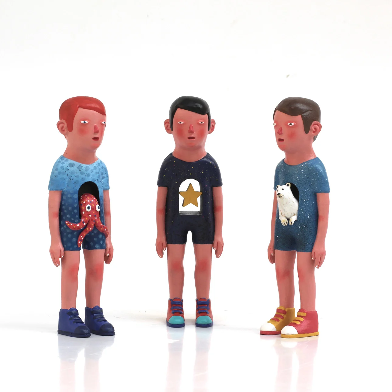 Second only to their son, Otto, Toco-Oco is Lara and Guilherme’s greatest collaboration. Under this playful name they dream up fantastical creatures which they turn into curious doll-sized sculptures. In Portuguese, “Toco” means stomp – their figures were initially aimed at children – and “Oco” means hollow, representing the potential to contain an entire imagination or a womb capable of generating life. They wanted a name that was phonic, philosophical and made up of two parts like their partnership.