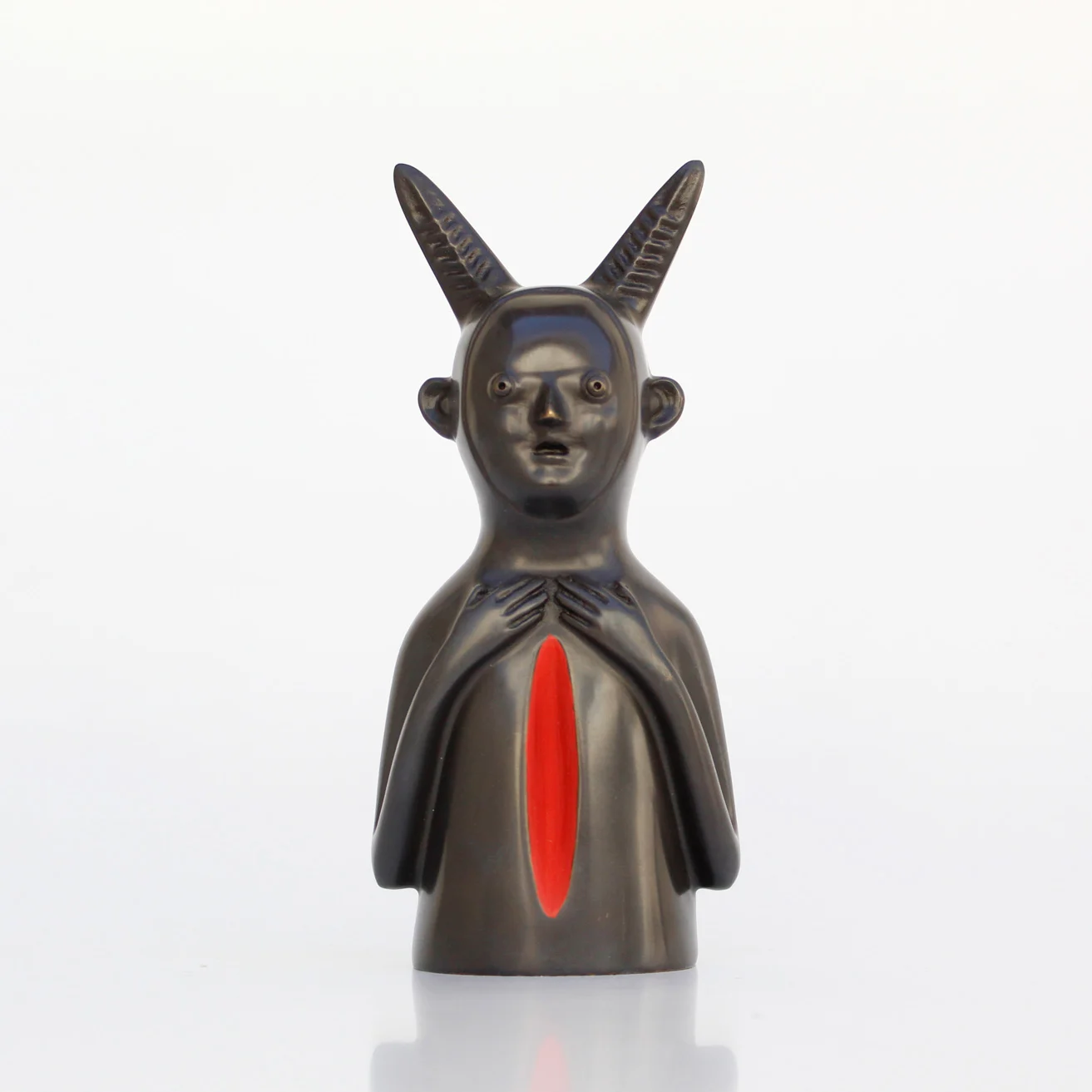 Though small enough to hold with one hand, and fragile if dropped, Toco-Oco sculptures carry Lara and Guilherme’s profound thoughts and gigantic questions about human existence in their clay frames. Sometimes these ideas are expressions of a shared global experience and other times they’re more autobiographical.