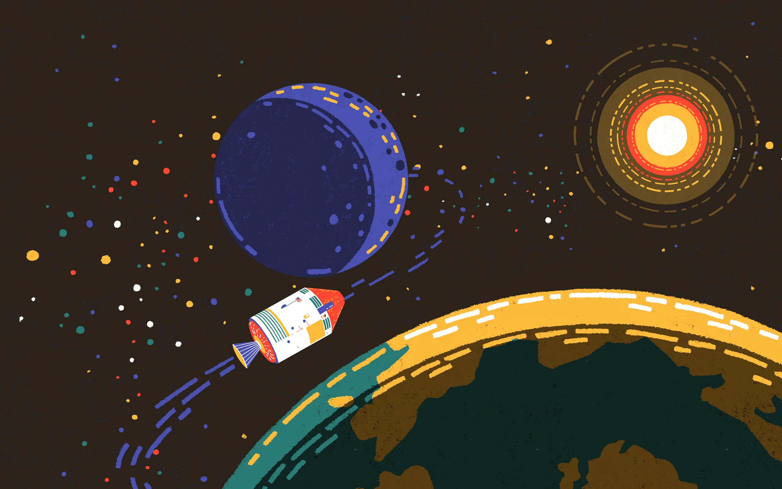 “This worked well, but when I made the TED Education piece last year, I went back to dark colors to reflect the sky. People reacted very enthusiastically, and now I get commissioned to illustrate planets and Milky Ways. It’s funny how things can come back around.”
