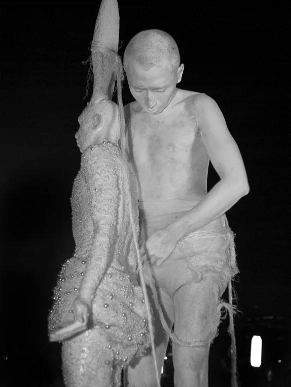 In his most memorable durational art work, nothingtoodoo, his solo debut at Mary Boone Gallery, he silently circled a mountain of salt on his knees, dressed all in white, in complete silence, for eight hours a day, five days a week, over the course of a month.