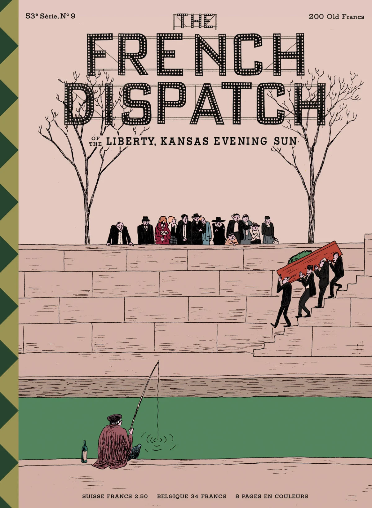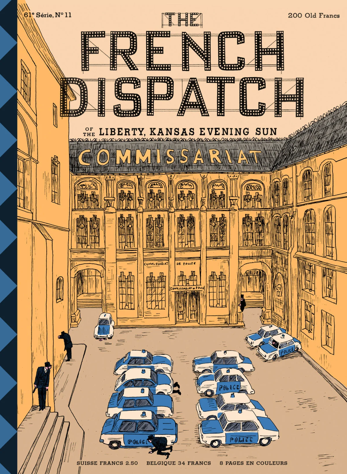 To those who are acquainted with both Wes’ films and the magazine, it will come as no surprise that he has been a lifelong New Yorker reader. In a recent article in the actual New Yorker (getting a bit meta now, bear with me) we learn that the director has “amassed a vast collection of bound volumes of the magazine, going back to the nineteen-forties.” Created as an ode to his favorite weekly, with even its characters based on real New Yorker journalists and stories, The French Dispatch is set in a fictional French town (Ennui-sur-Blasé) where the eponymous supplement to the Liberty, Kansas Evening Sun is produced. Wes was looking for an artist to work on this fictional magazine, creating its covers and drawing live on camera for scenes in which the it’s in-house artist is drawing. We know that the character of Hermés Jones doodles on the walls of his office, much like the current creative director of The New Yorker, Nicholas Blechman, allows his friend, the cartoonist Christoph Niemann, to doodle on the walls and windows of his office in the magazine’s One World Trade Center HQ.